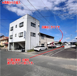 店舗は内地にございますので、付近道路からは認識しにくくなっておりますのでご注意ください。